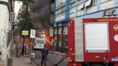 Desgovernado, ônibus com 57 estudantes pega fogo após colisão no Centro de Porto Alegre