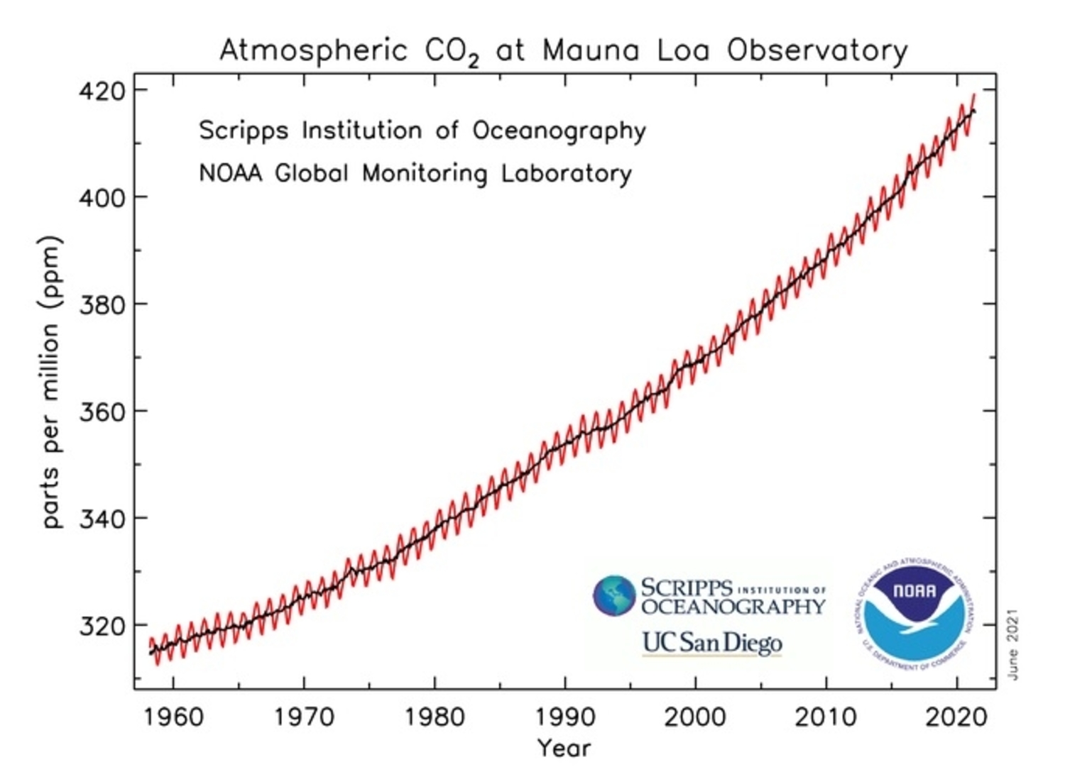 O mês de maio é geralmente aquele com as maiores taxas de dióxido de carbono a cada ano. Em maio de 2022, foi ultrapassado o limite de 420 partes por milhão (ppm), unidade de medida utilizada para quantificar a poluição do ar. Em maio de 2021 essa taxa era de 419 ppm e 417 ppm em 2020. Essas medições são estabelecidas pelo observatório Mauna Loa, no Havaí, idealmente localizado na altura de um vulcão, o que lhe permite não ser influenciado pela poluição local.