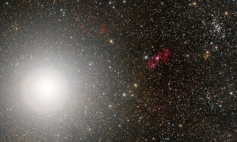 Observe: chegando aos quase 80% de iluminação, a Lua Crescente alta e ao Leste, depois do pôr do Sol. Deslocando-se em direção ao Oeste, a rainha da noite cruzará a fronteira entre a Constelação de Libra e a Constelação de Escorpião. Nesse meio tempo, a rainha da noite também ficará alinhada a Toliman, a estrela Alfa da austral Constelação do Centauro.