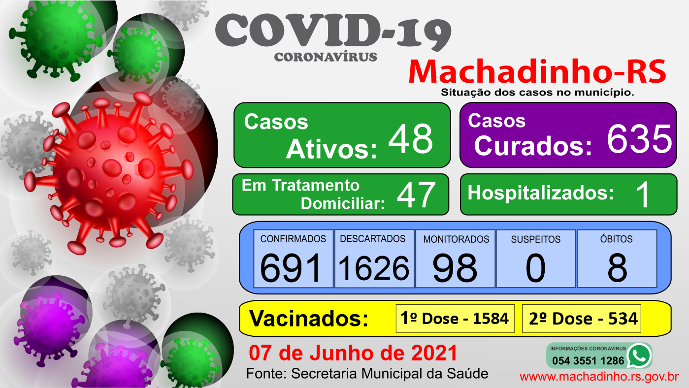 Cabe ressaltar que dentro do acelerado quadro de pessoas contaminadas, e até que todas as pessoas estavam vacinadas, somente o distanciamento pode ser a medida de proteção. Por isso é imprescindível que as medidas de prevenção sejam cumpridas de forma efetiva, principalmente o uso de máscara, evitar qualquer tipo de aglomerações, festinhas, rodas de conversa na praça, jogos de baralhos em grupo, não compartilhar chimarrão, lavar bem as mãos e usar álcool em gel.