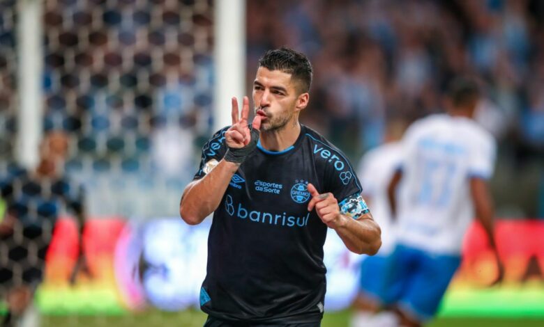 No entanto, a resposta do Grêmio veio aos dez minutos, quando Suárez foi lançado na área, tentou a finalização de primeira, mas a bola quicou no gramado. Mesmo assim, o uruguaio conseguiu mandar em direção a meta, mas o goleiro Marcos Felipe segurou.