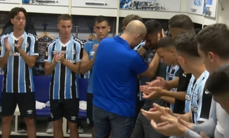 Discurso de dirigente do Grêmio faz Thiago Santos chorar e jogadores aplaudirem