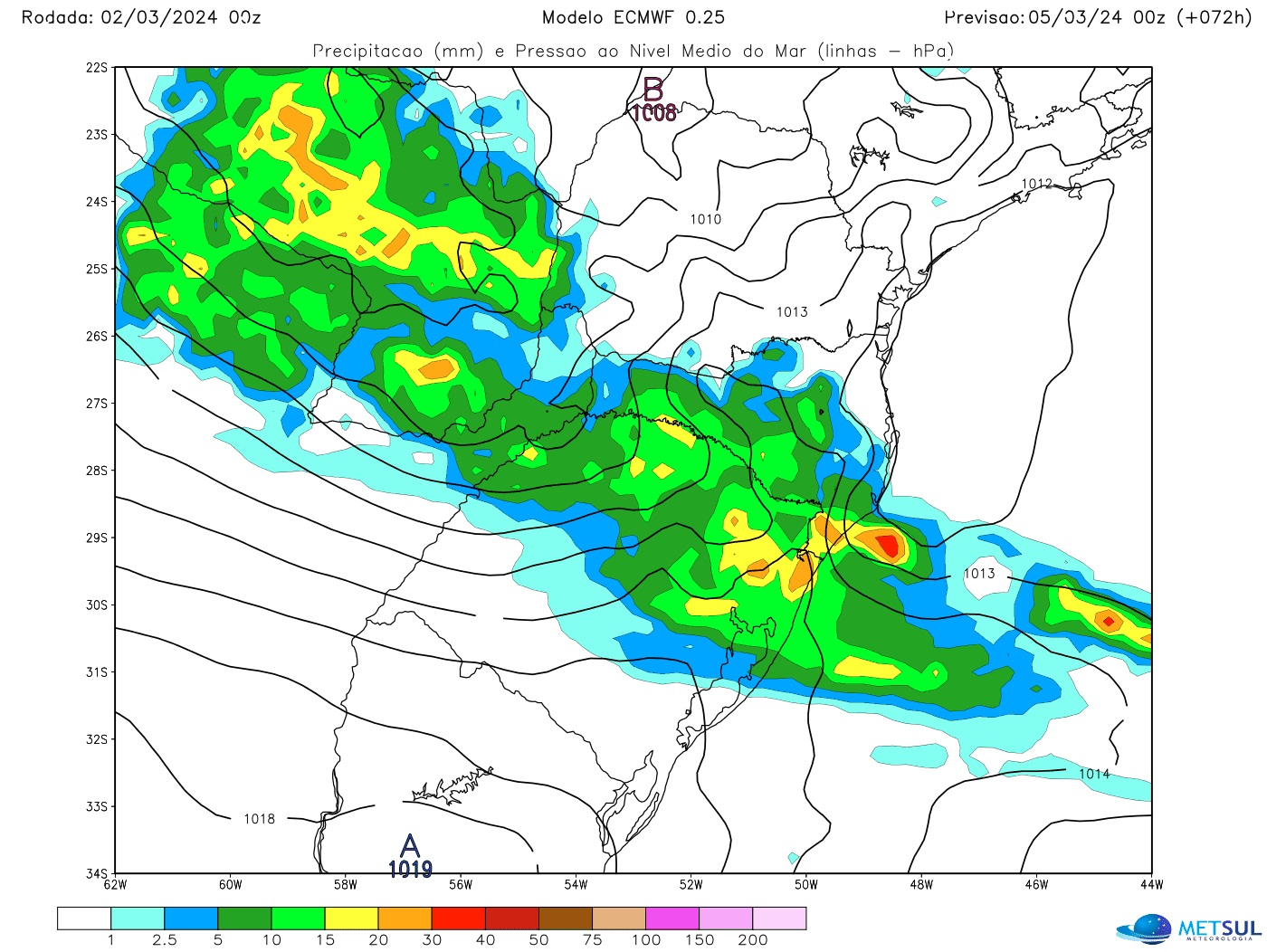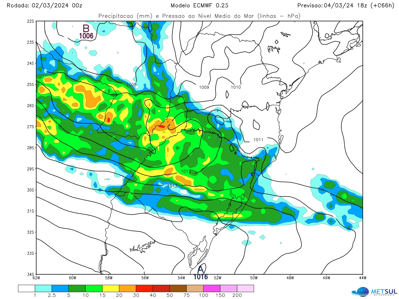 Projeção de chuva do modelo europeu para a tarde de segunda | METSUL