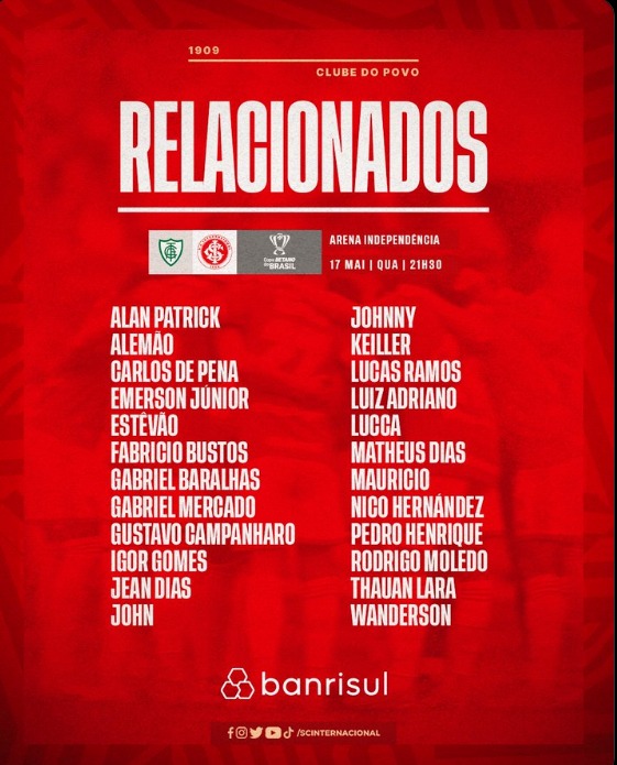 Inter também não terá Renê contra o América-MG; veja provável escalação e onde assistir