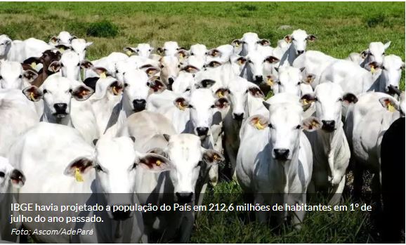 Ao registrar 238,2 milhões de cabeças ao final de 2024, o rebanho bovino superou em 12% o número estimado de pessoas no Brasil. Isso porque o IBGE havia projetado a população do País em 212,6 milhões de habitantes em 1º de julho do ano passado. A diferença era de 12,7% em 2023.