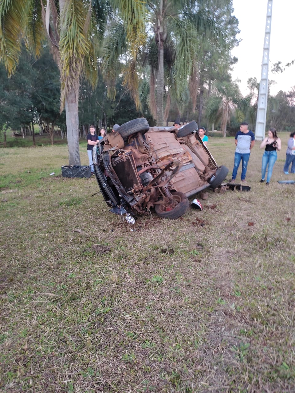 A guarnição estava em deslocamento para um chamado de um outro capotamento próximo a cidade de Maximiliano de Almeida e no caminho a Brigada Militar informou que a vítima estava sendo atendida pela secretária da saúde do município e que a guarnição poderia retornar, quando a viatura foi localizar um local seguro para fazer a manobra de retorno se deparou com esse capotamento que naquele mesmo momento havia acontecido..
