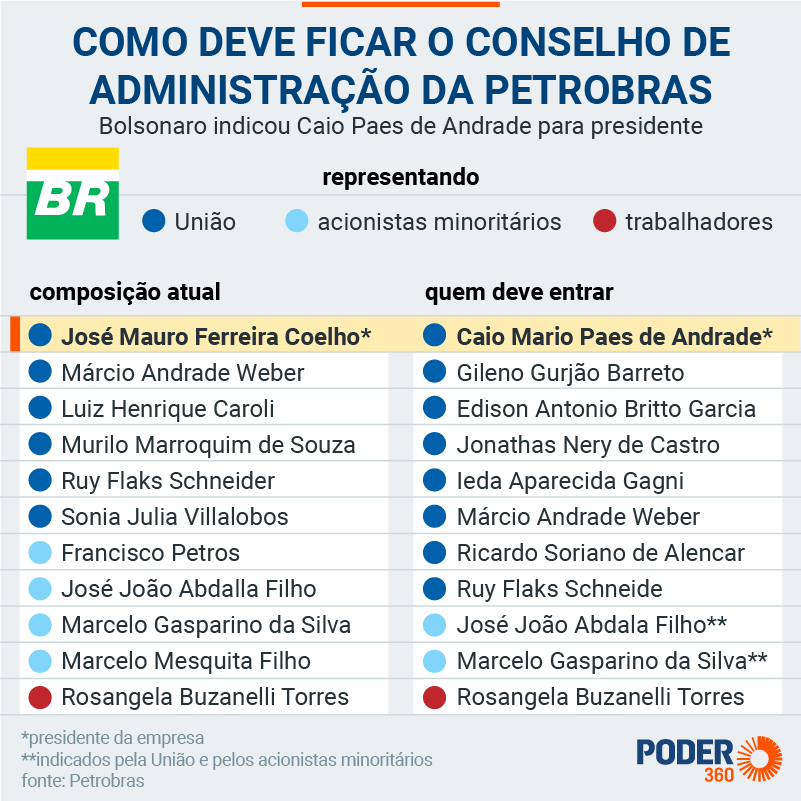 O governo Bolsonaro já indicou novos nomes para o Conselho da Petrobras. A indicação de Caio Paes de Andrade, atual secretário especial de Desburocratização, Gestão e Governo Digital do Ministério da Economia, foi confirmada pelo Ministério de Minas e Energia em 9 de junho. Para ele assumir, no entanto, é necessária uma assembleia do Conselho de Administração.