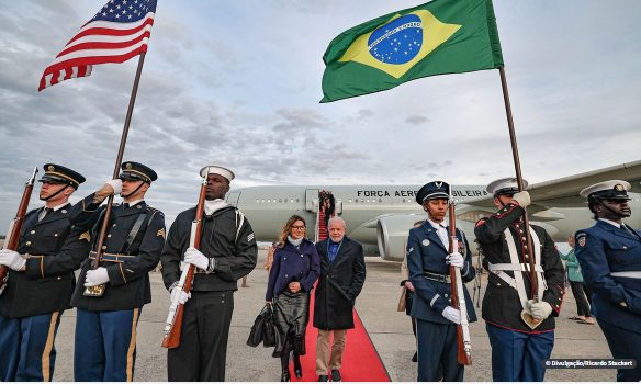 O presidente do Brasil, Luiz Inácio Lula da Silva, acompanhado da primeira-dama Janja Lula da Silva e da comitiva presidencial, chegou no início da noite desta quinta-feira (9) a Washington na primeira viagem do chefe de Estado do Brasil aos Estados Unidos. Lula vai se encontrar amanhã à tarde com o presidente dos EUA, Joe Biden.
