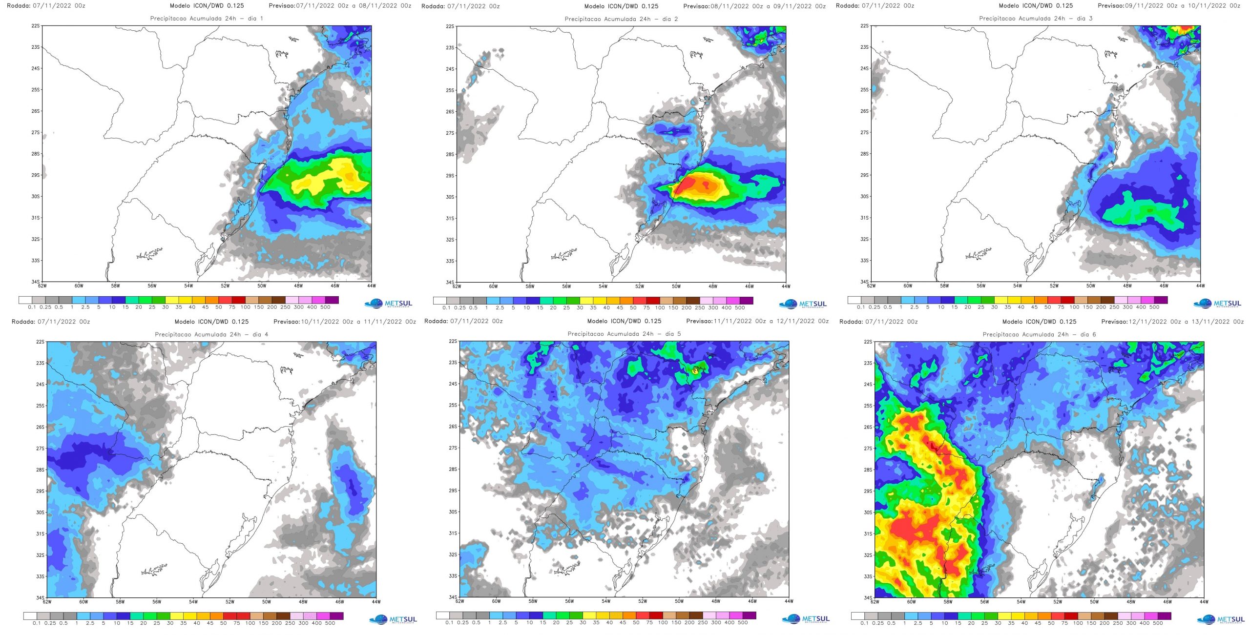 Projeção de chuva dia a dia de hoje até sábado do modelo meteorológico alemão Icon | METSUL