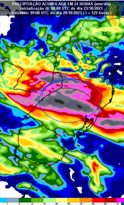 Projeção do INMET mostra altos volumes de chuvas para a região