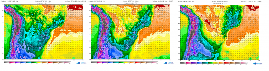 Previsão da temperatura mínima para a quarta, quinta e sexta-feira no Centro/Sul do país | METSUL