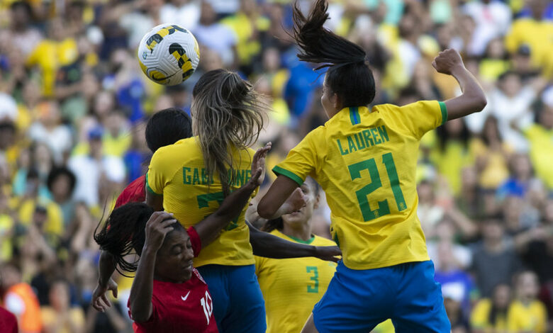 O primeiro tempo começou nervoso para o Brasil, com chegadas perigosas do ataque canadense, mas a partir dos 30 a seleção tomou conta da partida até abrir o placar aos 40 minutos, com Kerolin roubando a bola no meio campo. A camisa 10 disparou com a bola, se desvencilhar da marcação e esperou o momento para dar de presente para Bia Zaneratto desferir um chute cruzado fulminante de esquerda.