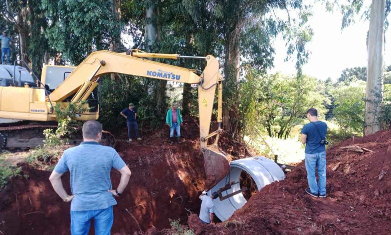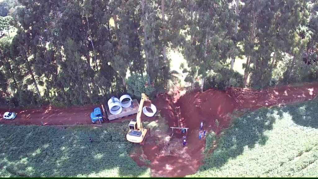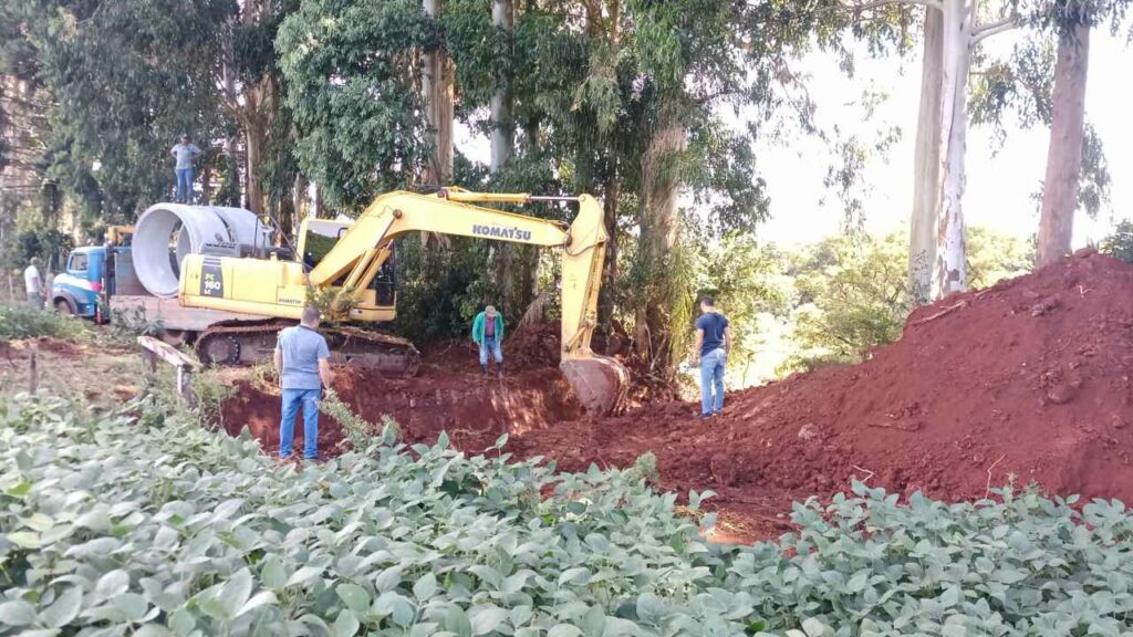 Nesta semana os trabalhos da Secretaria de Obras e Viação local, estiveram sendo realizados na Comunidade da Linha Santa Terezinha. Em parceria com os produtores locais, parte da estrada foi reconstruída com a instalação de tubos de grande porte, substituindo o atual material que possuía estrutura de madeira. Como forma de contrapartida, os produtores auxiliam com mão de obra e até maquinário para que os trabalhos sejam realizados.