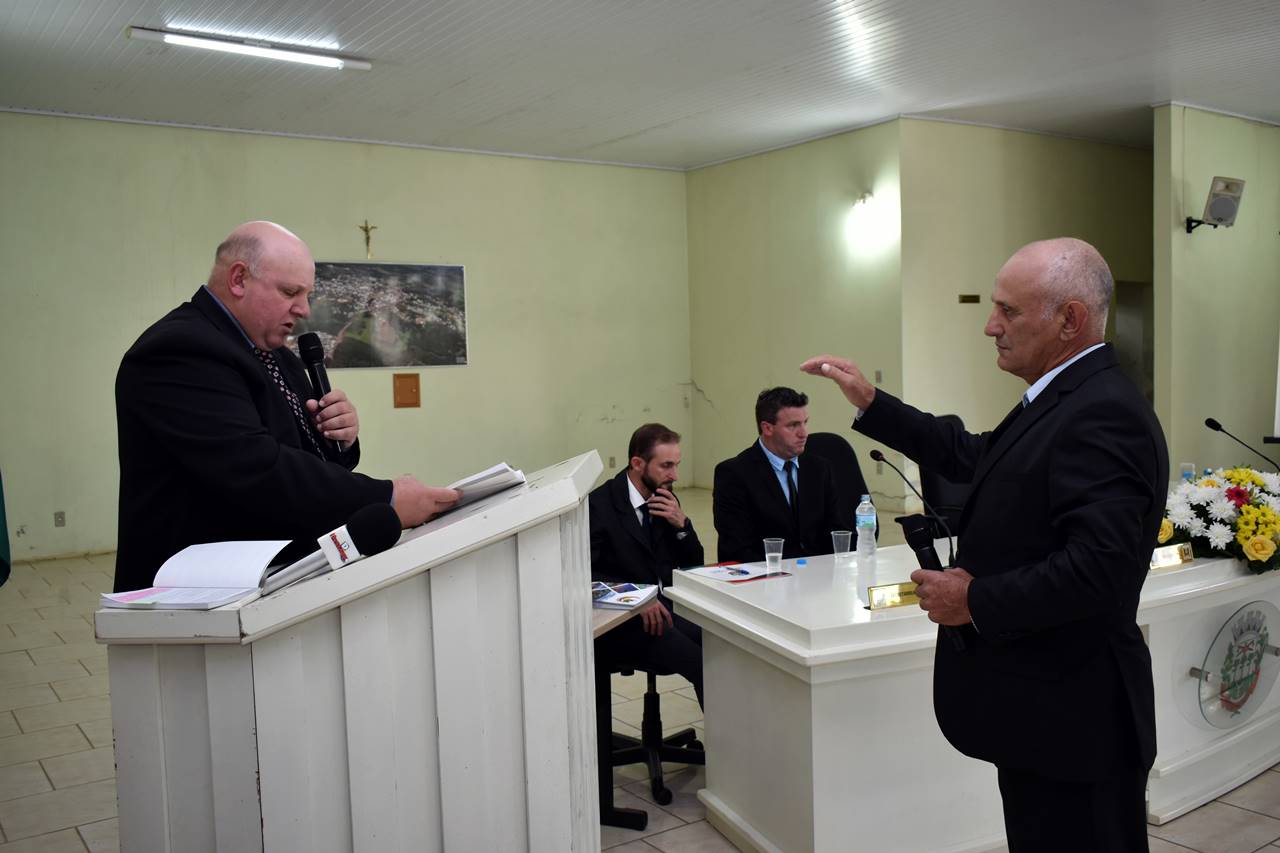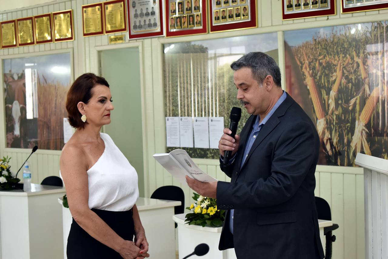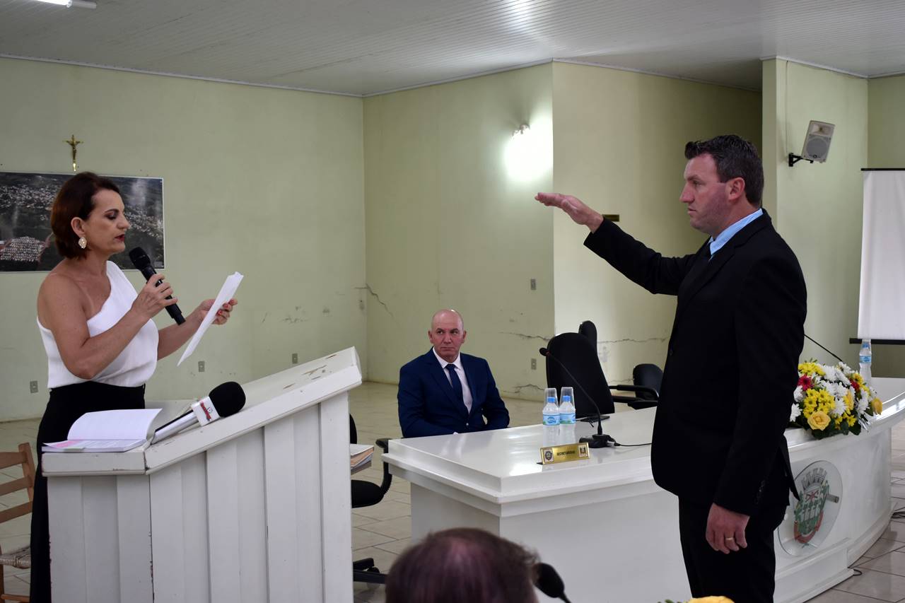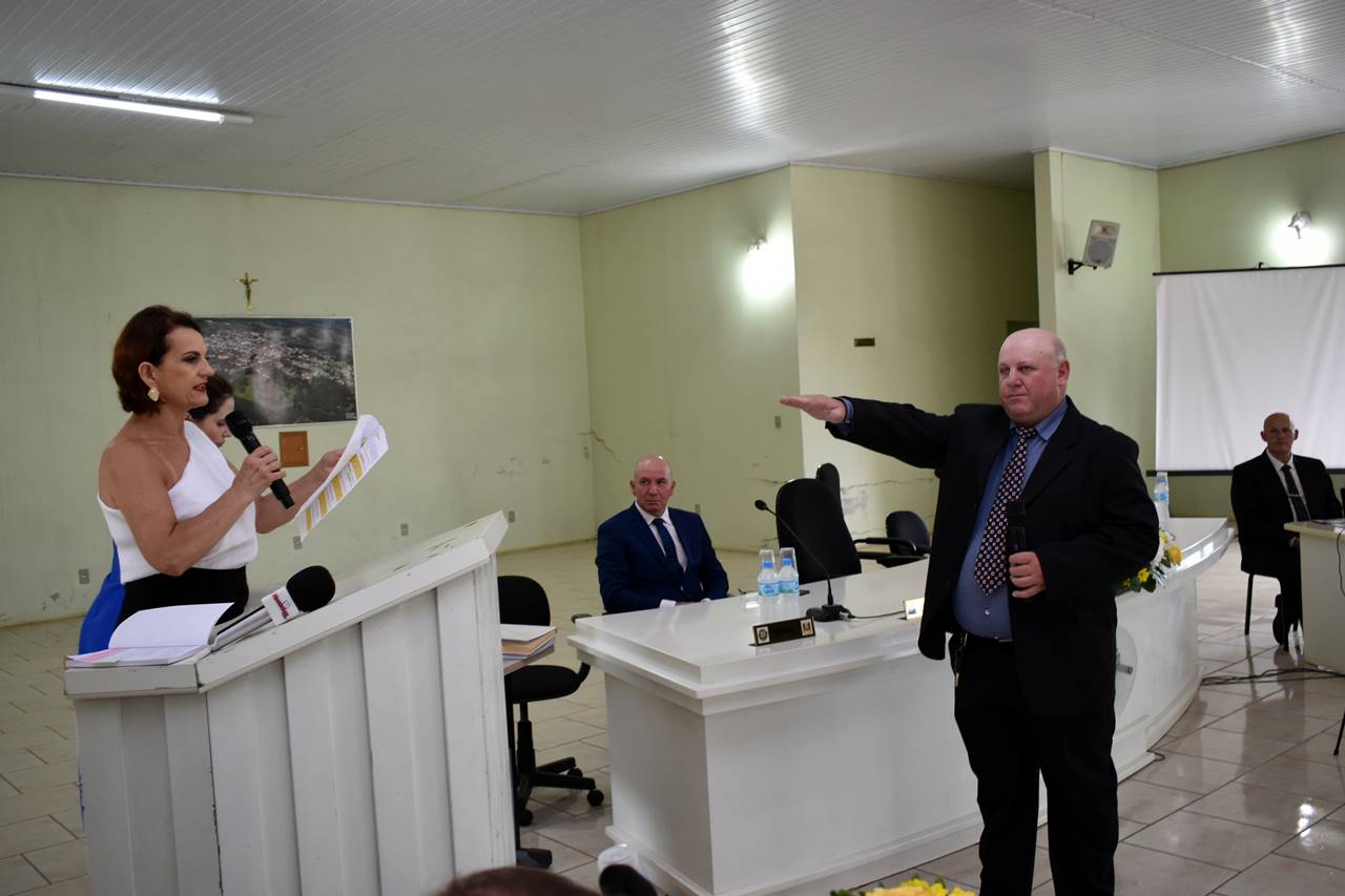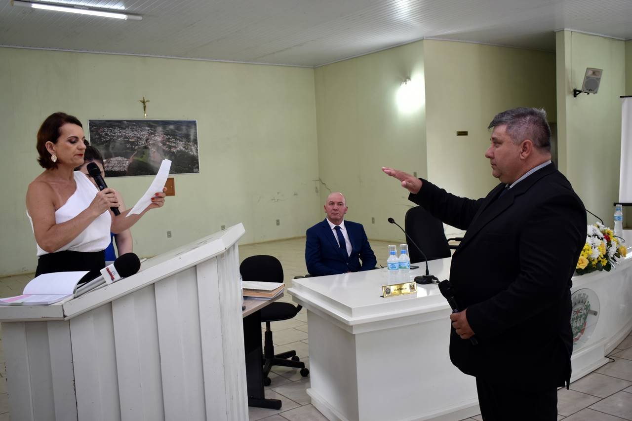 A cerimônia teve início com a vereadora Jussenei Bianchin, a mais votada nas últimas eleições, dando posse aos novos vereadores: