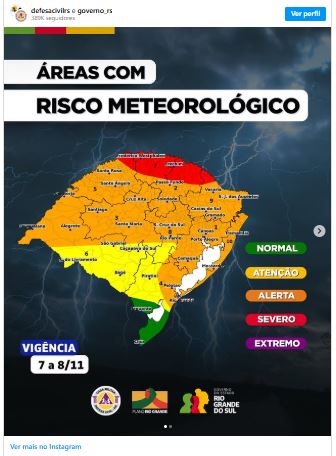 O maior risco de tempo severo por efeito da formação do ciclone será justamente onde passar a linha de instabilidade, isso inclui o Noroeste e o Norte do Rio Grande do Sul.