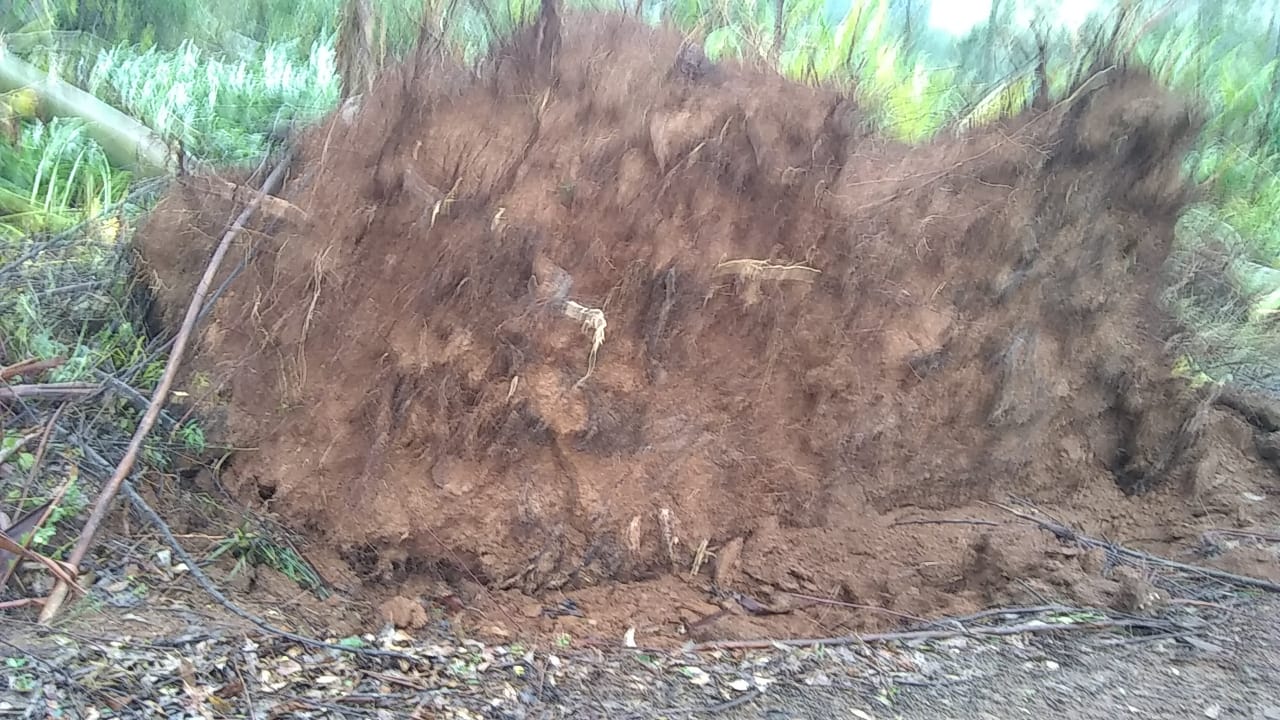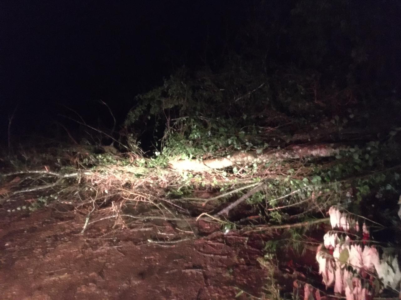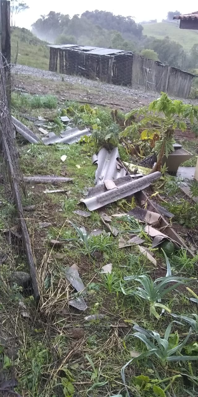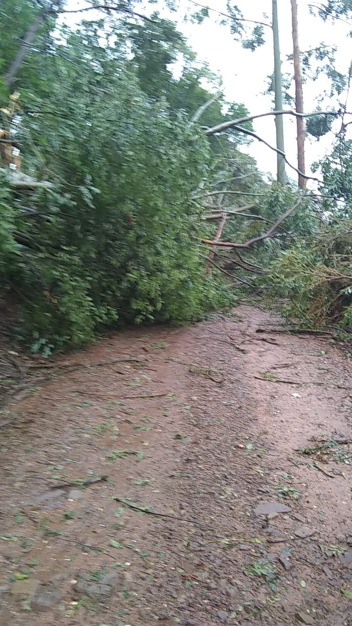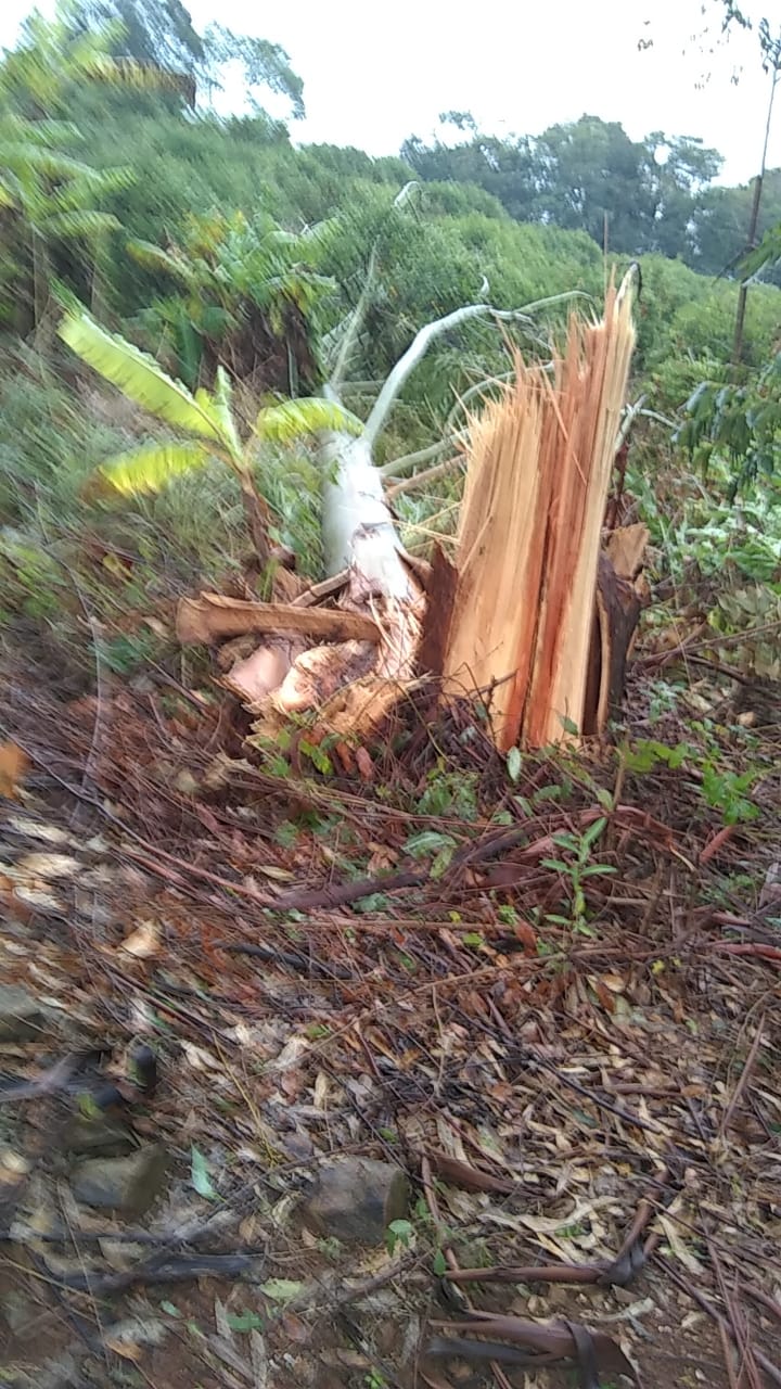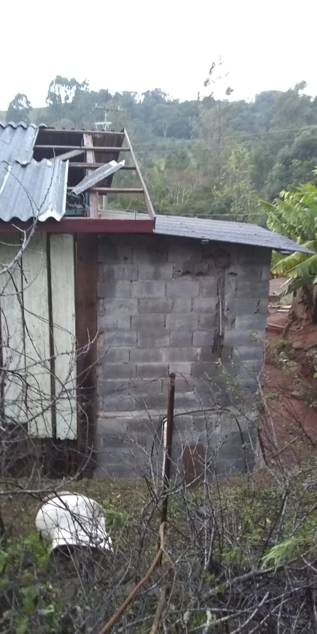 Equipe foi deslocada até a Comunidade da Linha Canudo- interior – Machadinho RS para atender chamados de estradas bloqueadas com árvores caídas e de casas destelhas .